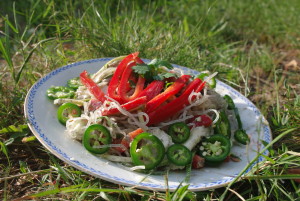 Wenn europäische Rohkost auf thailändische Schärfe trifft, erhält man deliziöse Kelpnudeln mit ordentlich Wumms im Abgang.