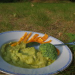 Danach die Masse auf zwei Teller verteilen und mit den restlichen Brokkoliröschen verzieren.